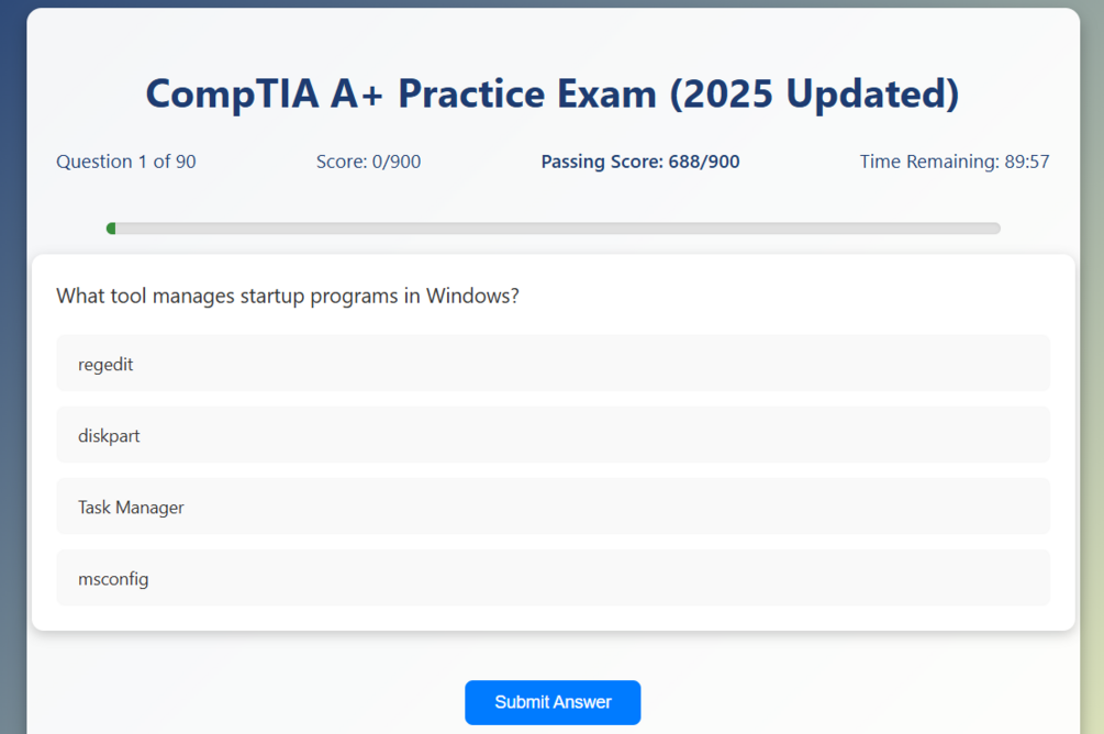 CompTIA A+ Practice Exam$9.99$9.99https://schema.org/InStockusdIT Study GamesIT Study GamesTake this CompTIA A+ practice exam directly on your phone! Desktop works too!Add to cartAdd to wishlist New wishlistShareShare on XShare on Facebook Copy linkCopy product URL