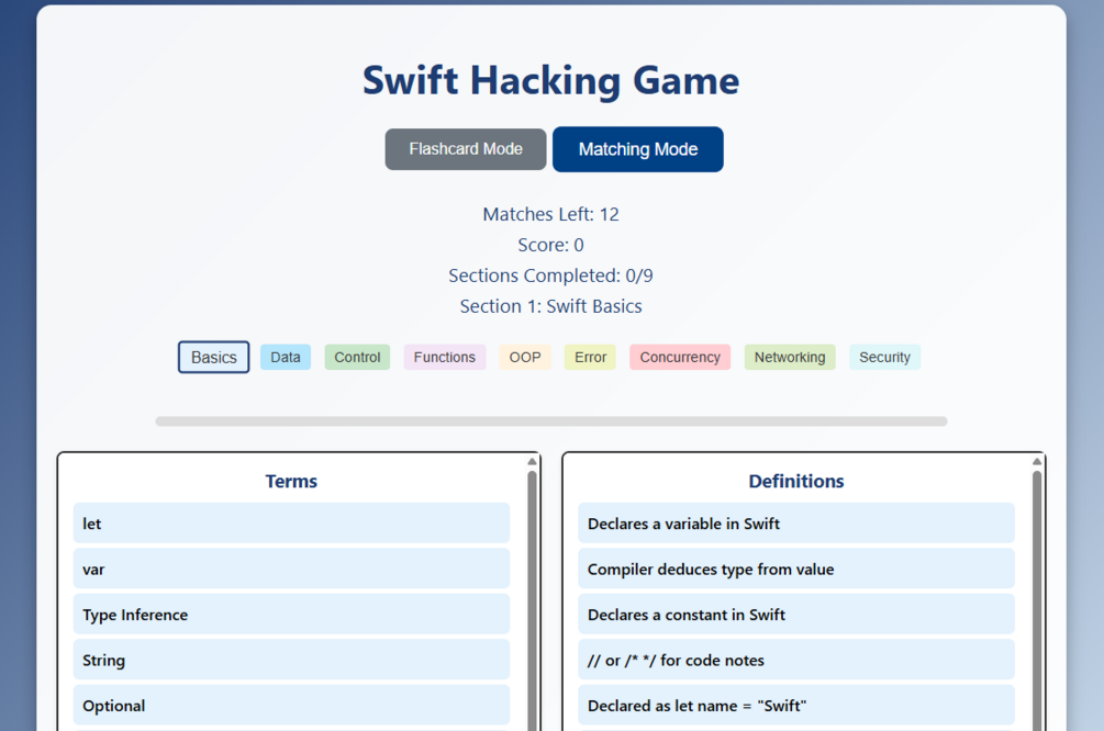 Swift Hacking Study Game